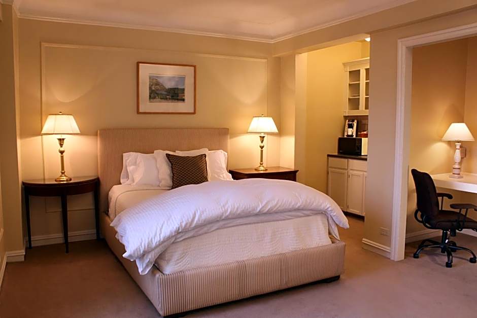 This light-filled room features a spectacular view of the city. It has a beautifully upholstered queen-sized bed. Two comfortable club chairs make this room a great place to relax or watch your favorite show. The kitchenette has a refrigerator, gas stovetop, microwave and a Keurig coffee machine. The tiled bathroom has a tub and shower. YOUR ARRIVAL TIME IS VERY IMPORTANT TO US, PLEASE CONTACT US. NO CHECK-INS AVAILABLE AFTER 10PM.